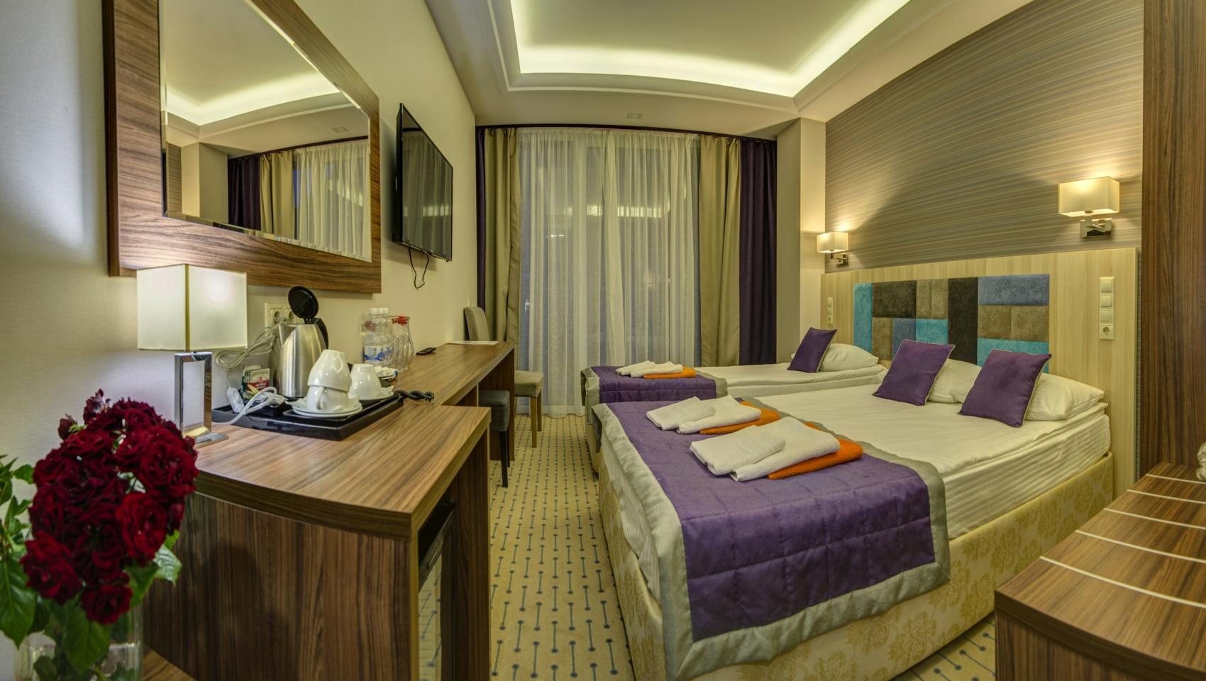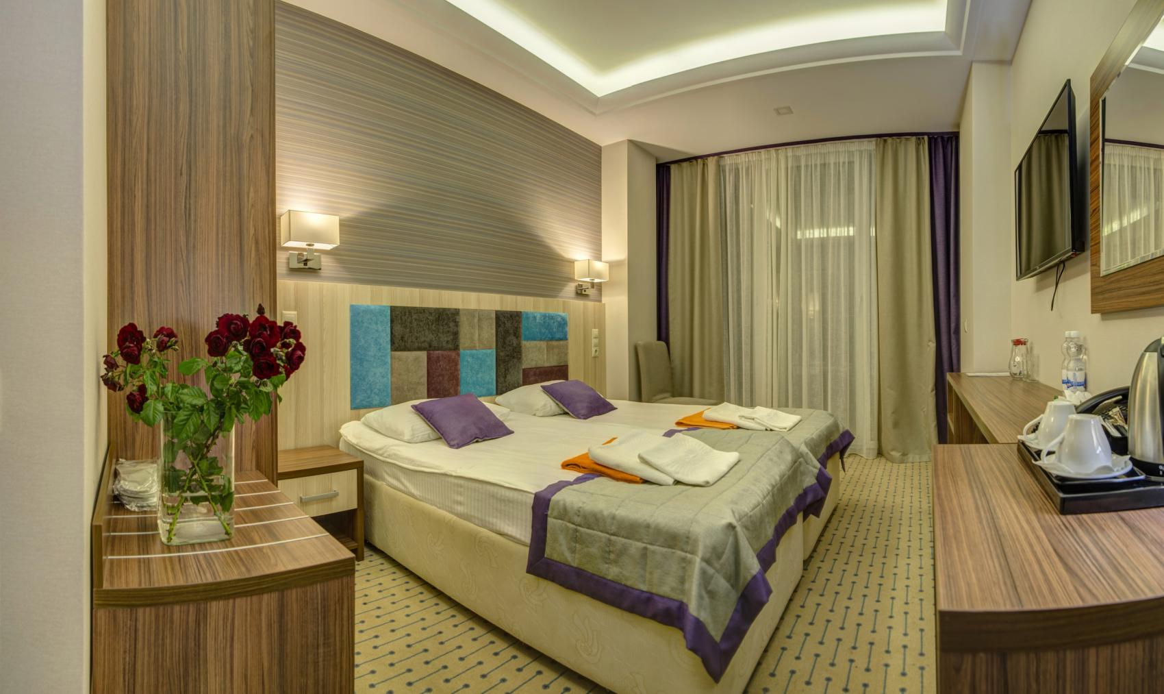 проживание в выбранной категории номера, питание (согласно выбранного пакета)