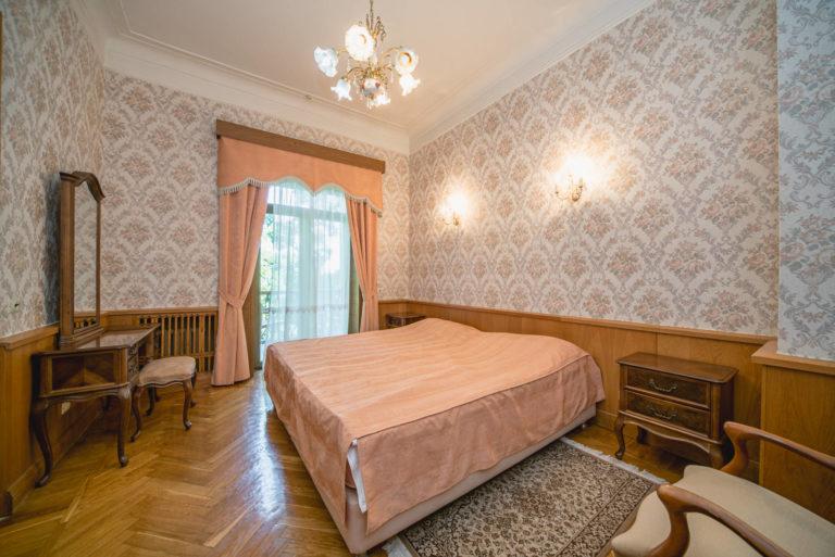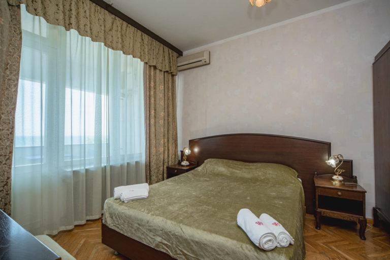 Гостям предлагаются номера эконом-класса с бесплатным Wi-Fi в санаторных холлах. К услугам отдыхающих – два бассейна: крытый (с морской водой, гидромассажем, подводными гейзерами и водопадом) и сезонный (пресноводный). Есть русская баня, аптека, бильярд, библиотека,теннисный корт, спортплощадки, кинозал, летний театр, охраняемая автостоянка и экскурсбюро.